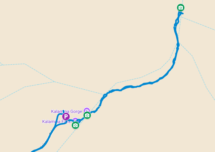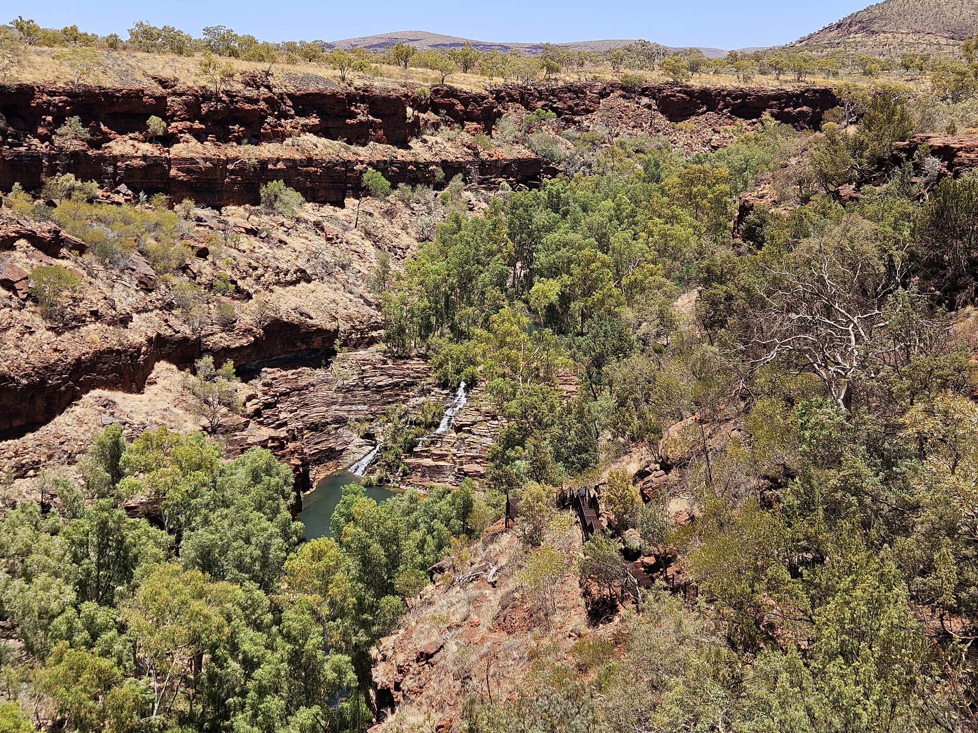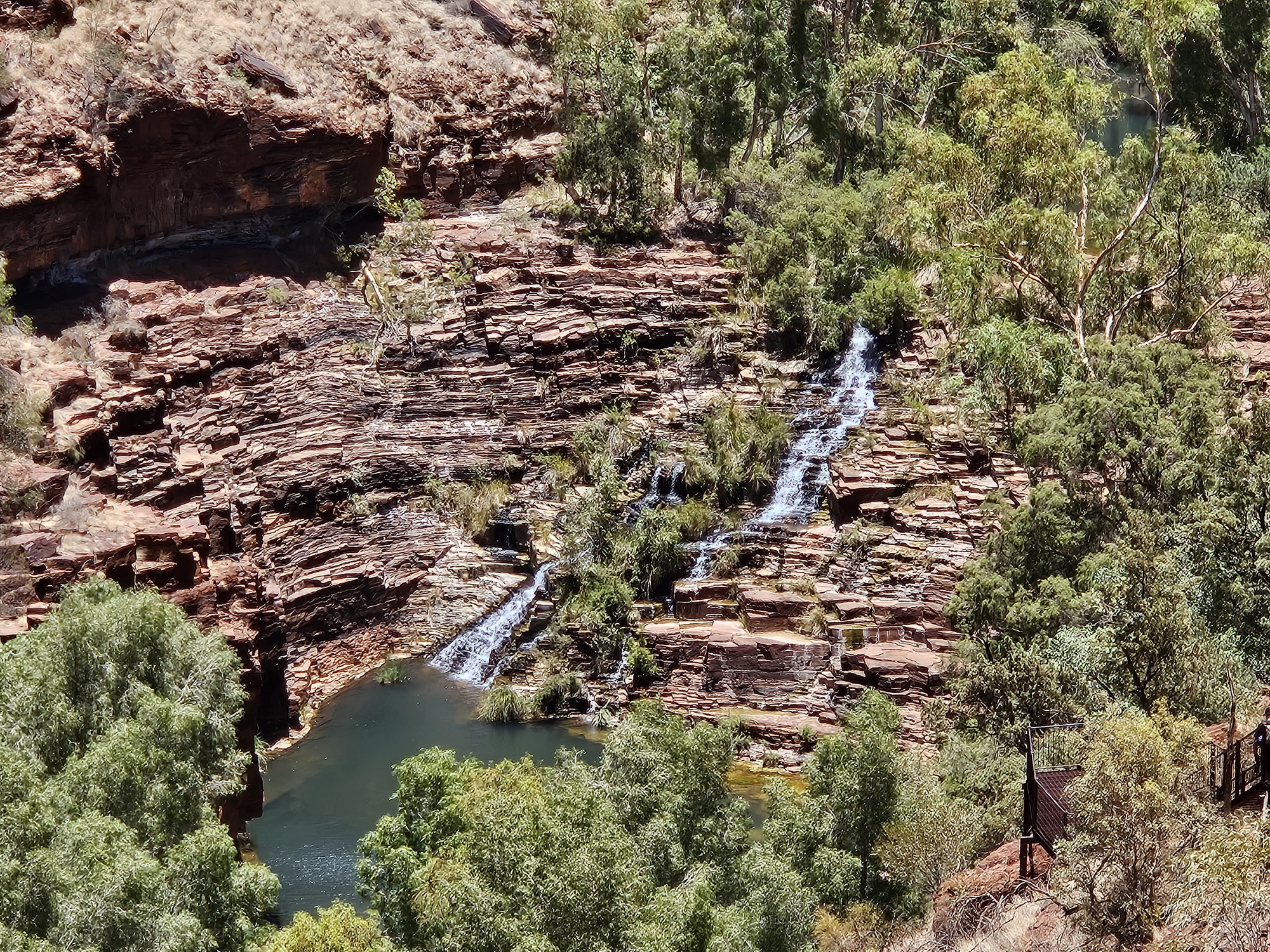 Direkt nach dem Abstieg in den Kalamina Gorge gelangt man nach rechts zum Kalamina Falls. Der Zugang ist ziemlich schwierig, da man über grosse Steine und entlang einer Wand gehen muss.