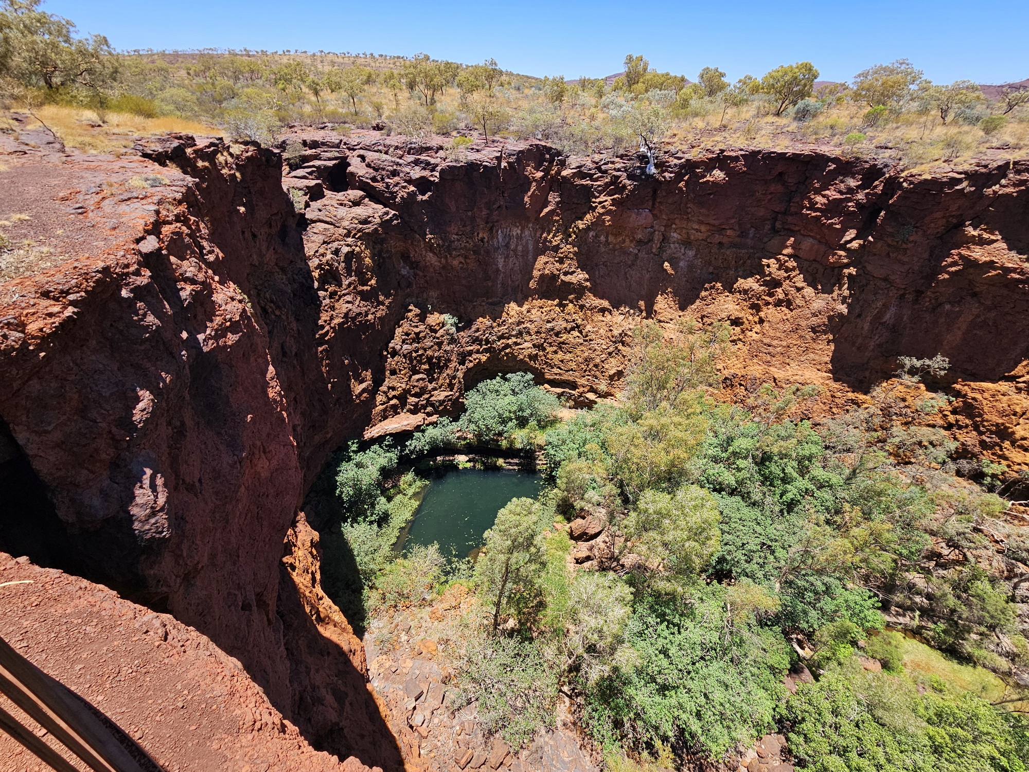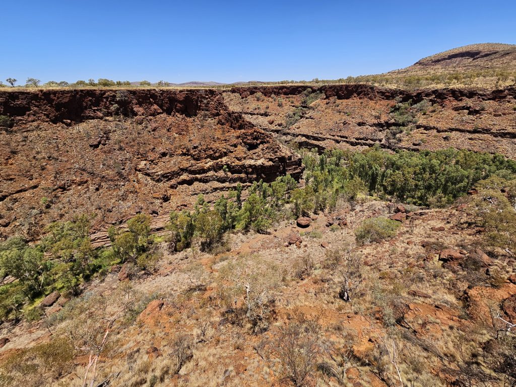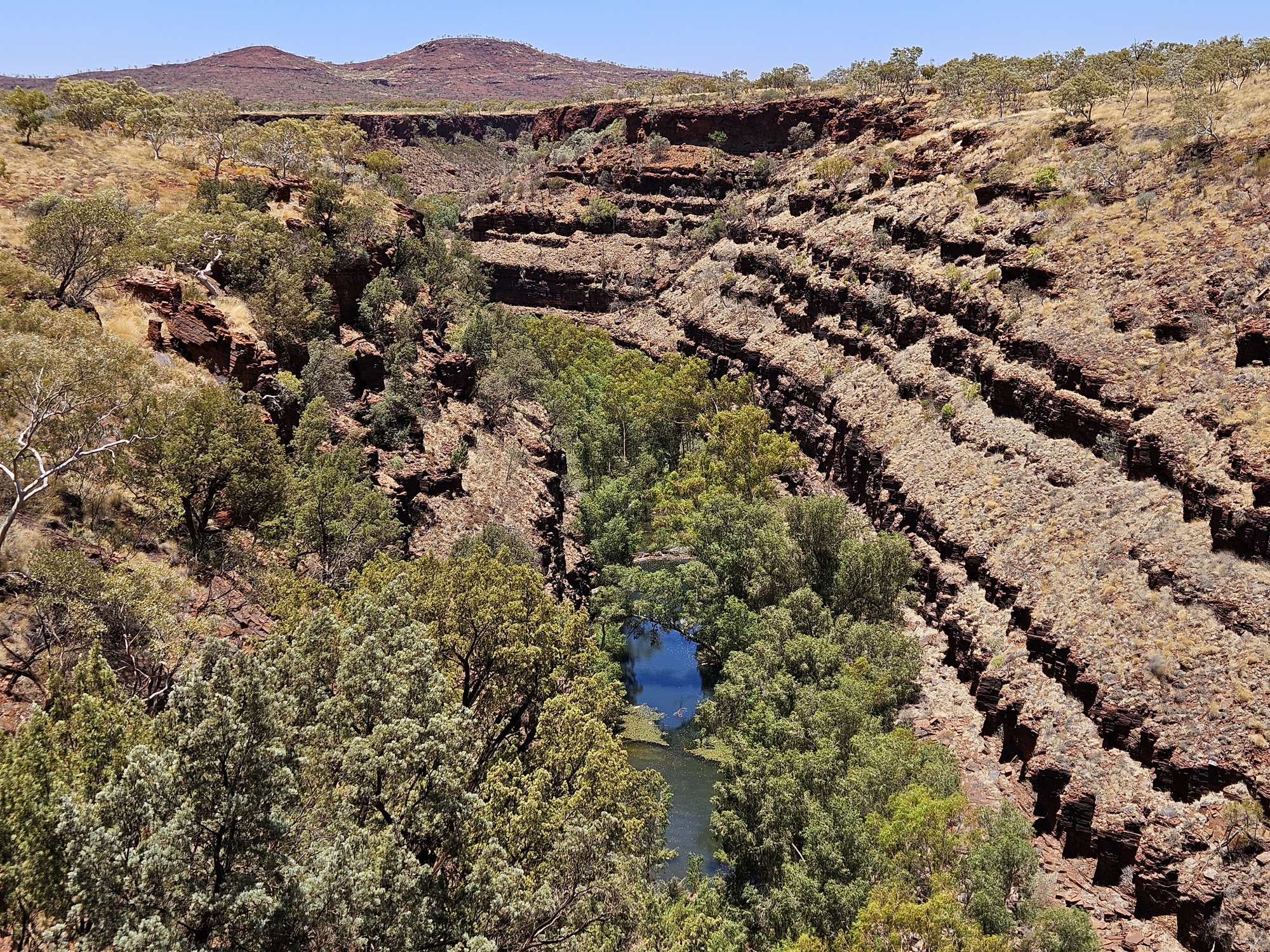 Weiter ging unsere Fahrt ins Gebiet des Dales Gorge. Wir besuchten die 3 Lookouts, verzichteten aber auf Grund der hohen Aussentemperatur von 37°C auf eine Wanderung nach unten in den Gorge.