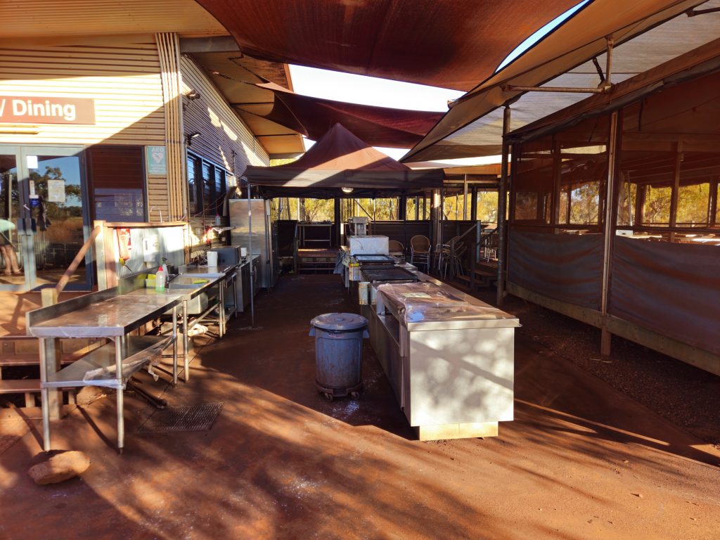 Da das Restaurant im Karijini Eco Retreat leider seit Mitte November geschlossen ist, darf man die Küche selber benutzen. Es ist teilweise etwas chaotisch, insbesondere wenn mehrere Parteien parallel in der Küche ihre Mahlzeiten zubereiten. Heute waren wir aber alleine.