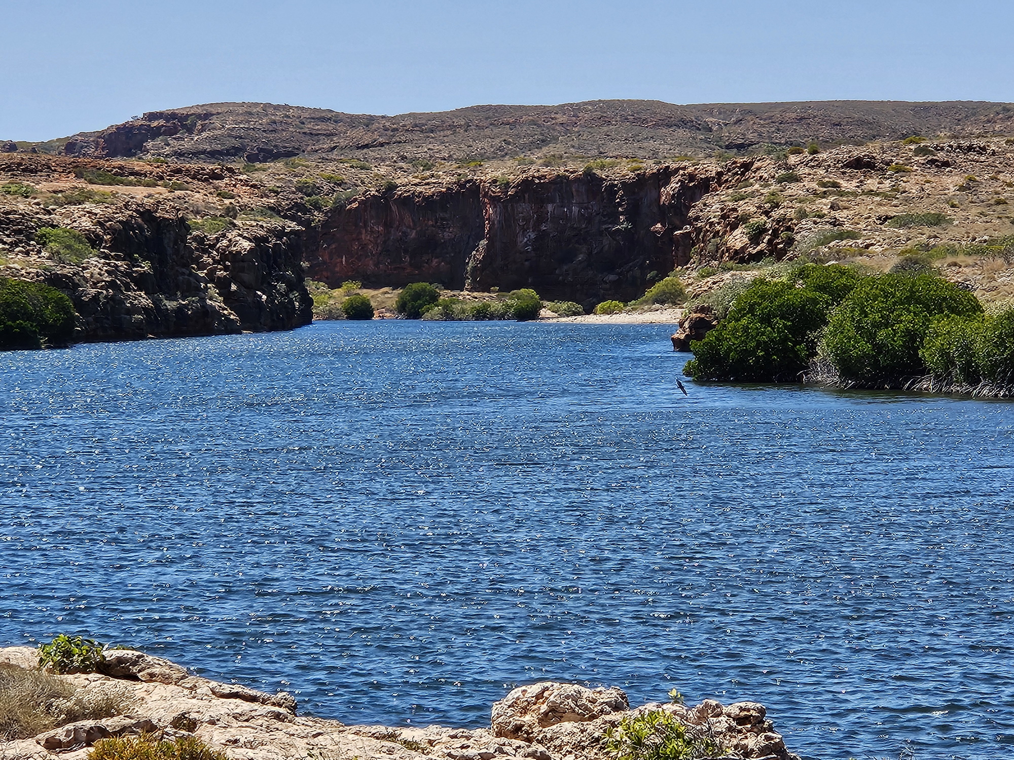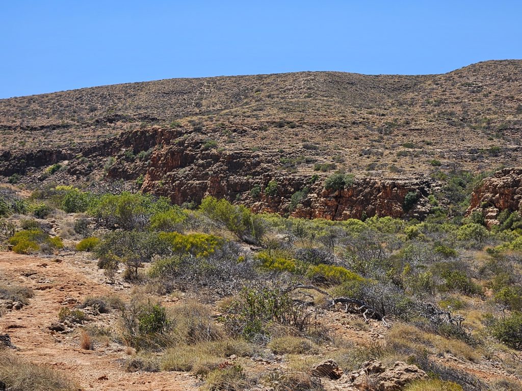 Zuerst fuhren wir bis zum Yardie Creek, der ganz am Ende der Strasse an der Westküste liegt (1h, 90km). Von dort geht es dann nur noch mit einem 4×4 weiter.