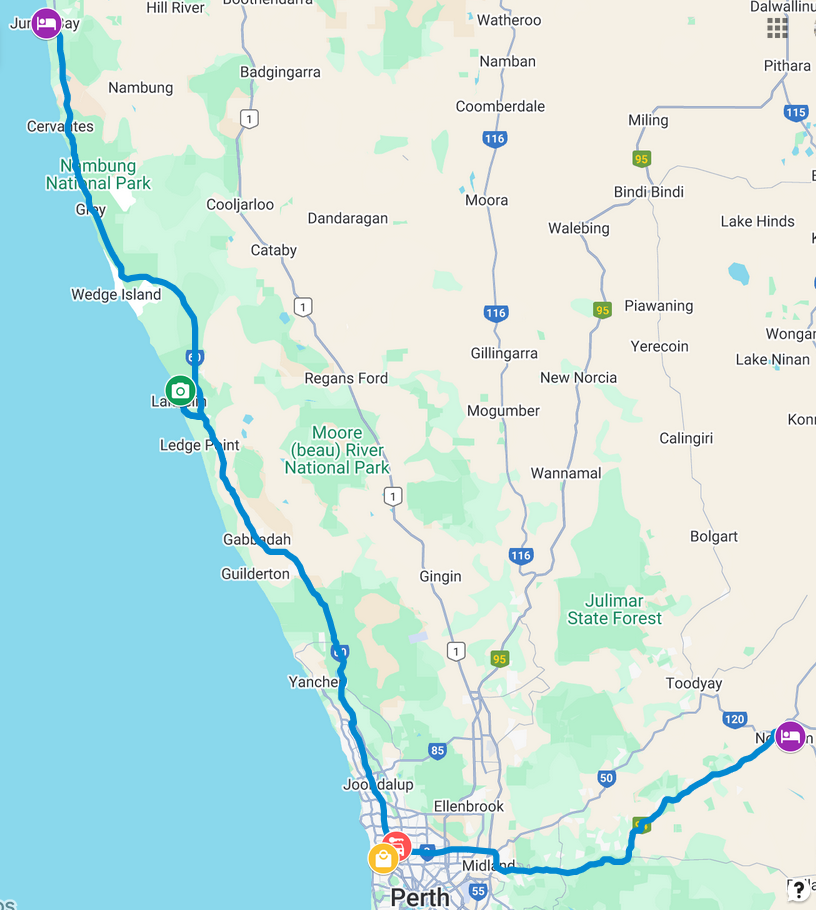 Zuerst besuchten wir in Perth unseren Autovermieter RedSands im Norden von Perth. Der defekte Kühlschrank und das defekte Rad wurden ausgetauscht.