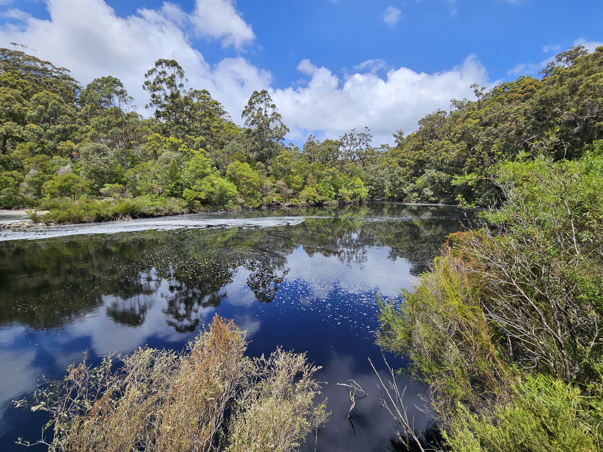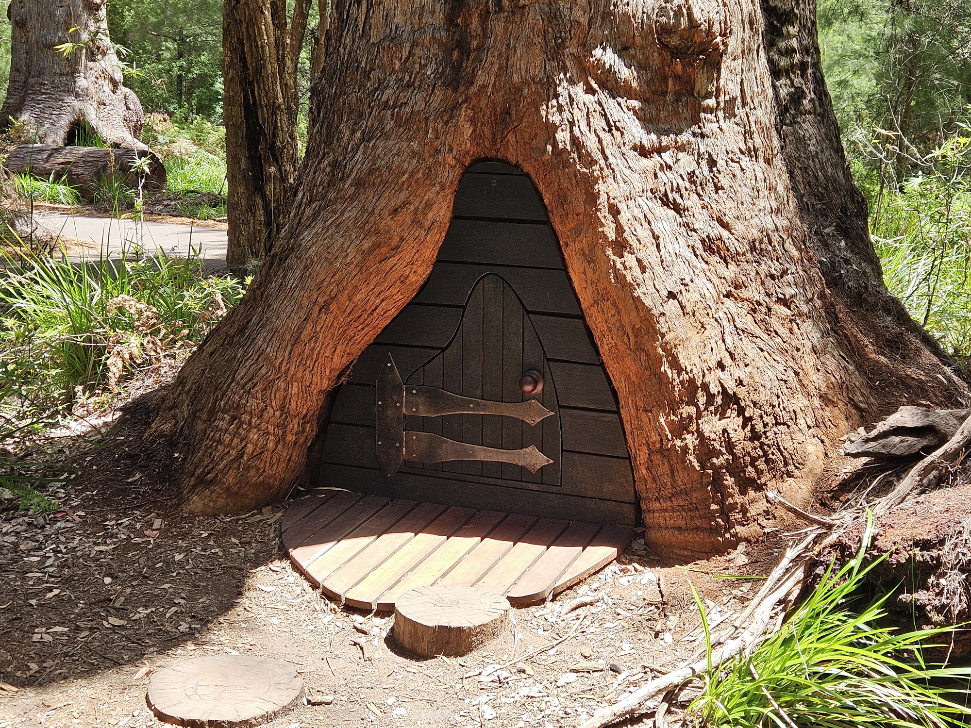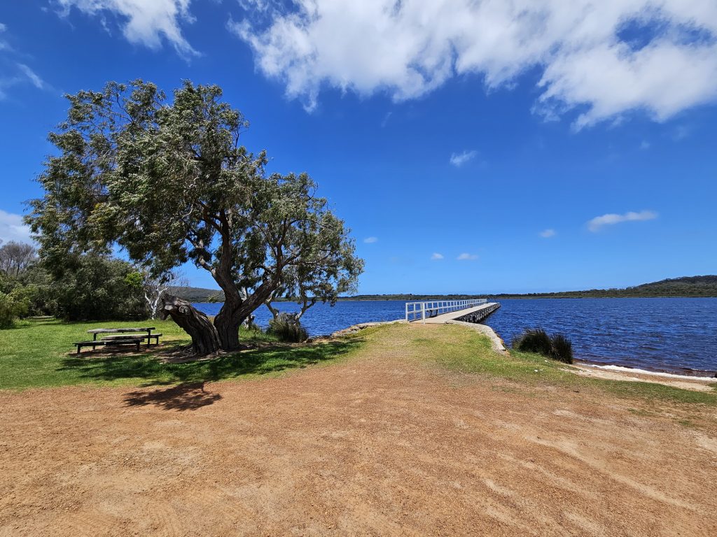 Unser erstes Ziel war der Walpole-Nornalup-Nationalpark (Wikipedia). Hier wachsen riesige Karribäume und sog. „Red Tingles“ Bäume. Kurz vor Walpole bogen wir auf einen Waldweg ab, der uns zum Giant Tingle Tree führte. Dann fuhren wir weiter zum Circular Pool für unsere Mittagspause.