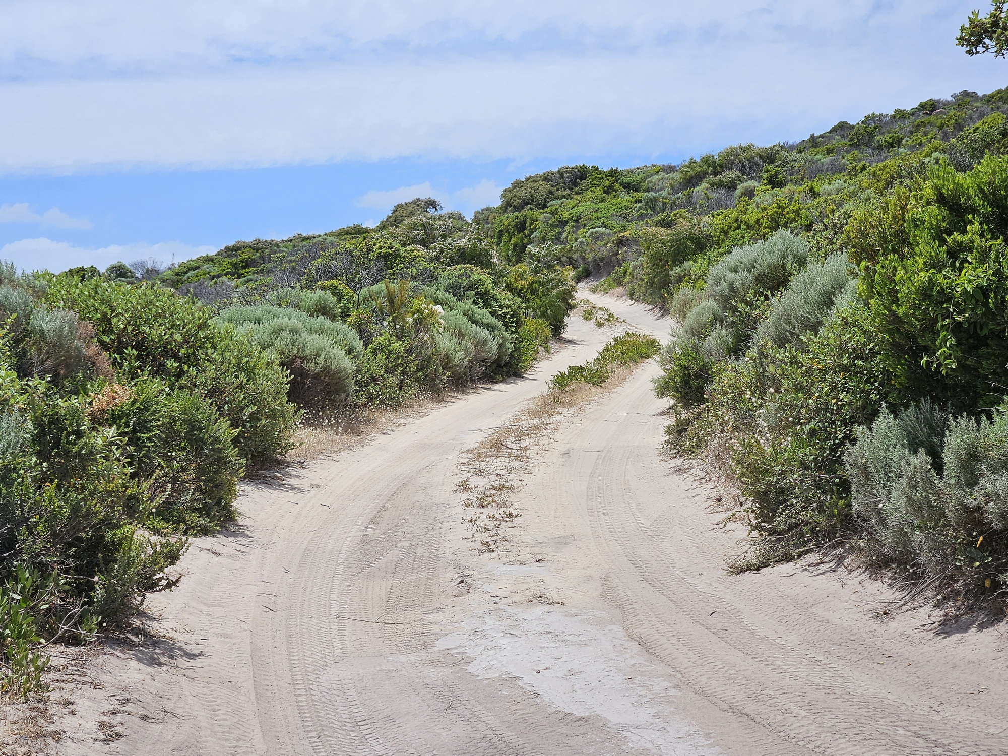 Der Abstecher zum Elephant Rock Beach erwies sich als etwas mühsamer als gedacht. Der Weg war nur mit 4×4 zu schaffen und selbst da wurde uns die Sache dann zu heikel, da wir keine anderen Fahrzeuge entdeckten und der Weg sehr steil und sandig war. Somit stellten wir unsere Auto unterwegs ab und gingen zu Fuss zum Strand.
