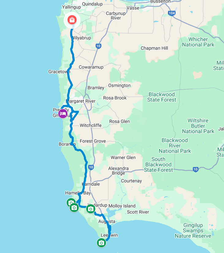 Das Gebiet von Margaret River zeichnet sich durch eine grosse Vielzahl von Weingütern aus. Gefühlt kann man alle paar hundert Meter abbiegen und Wein degustieren. Es gibt aber auch mehrere Höhlen, die in diesem Gebiet besichtigt werden können. Wir entschieden uns für die Jewel Cave ganz im Süden. (216km ganzer Tag)