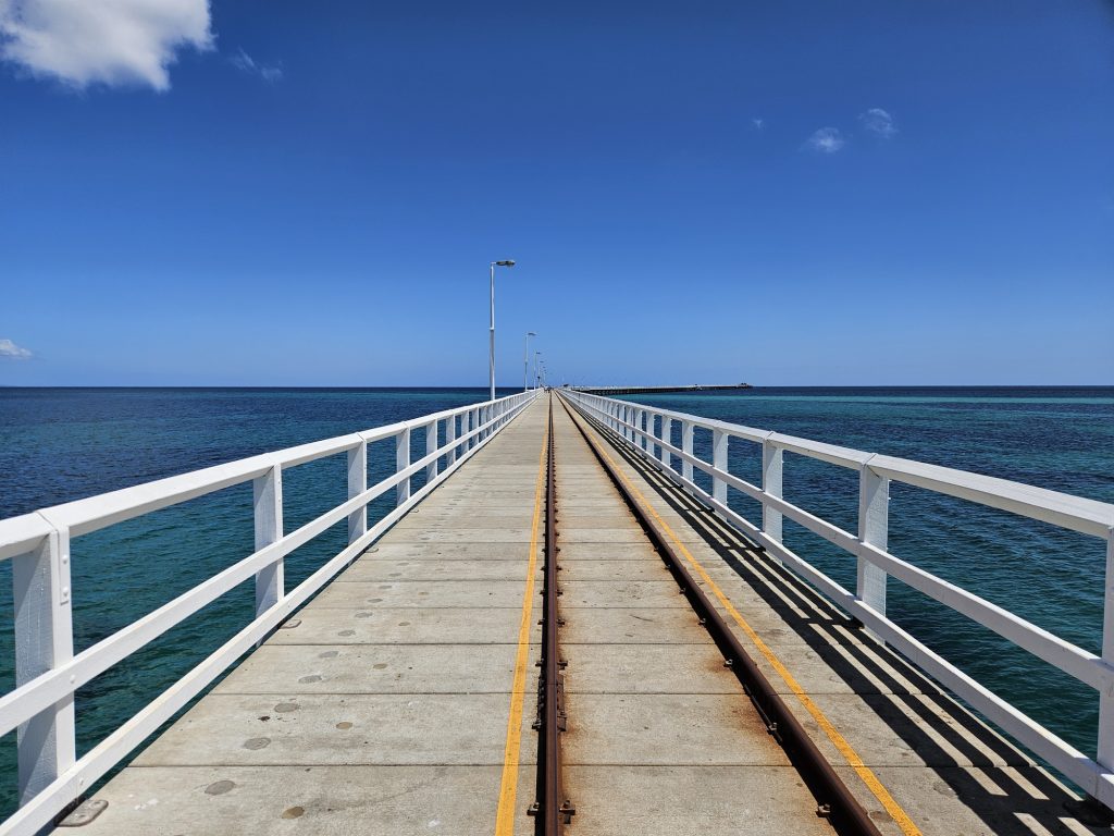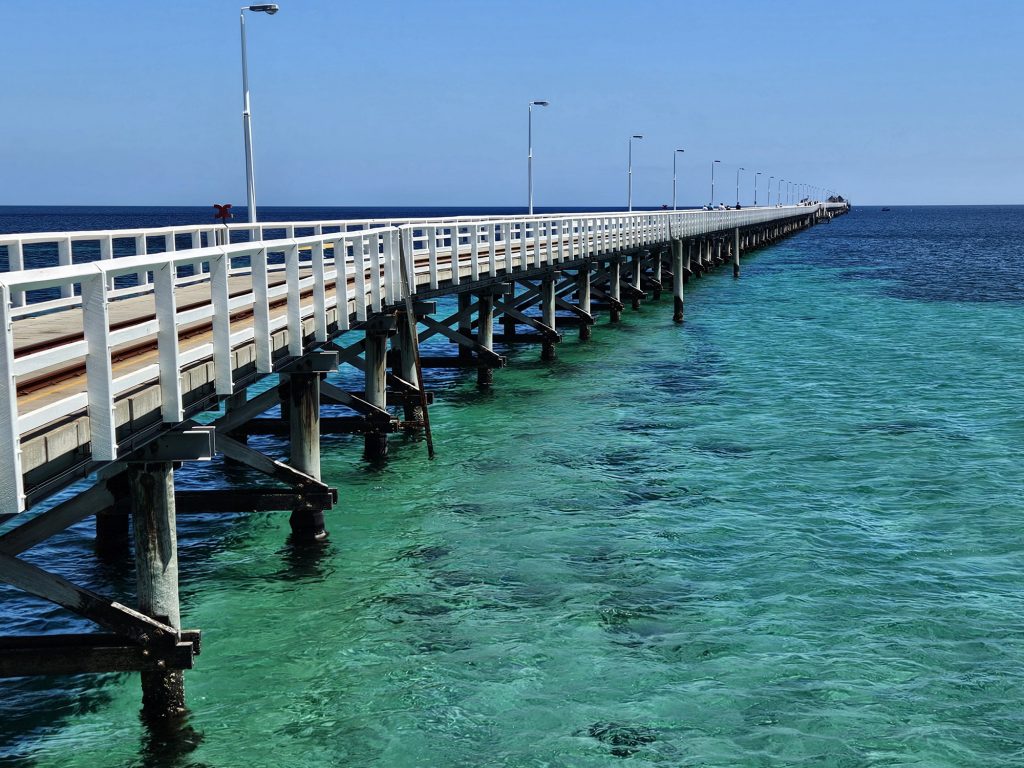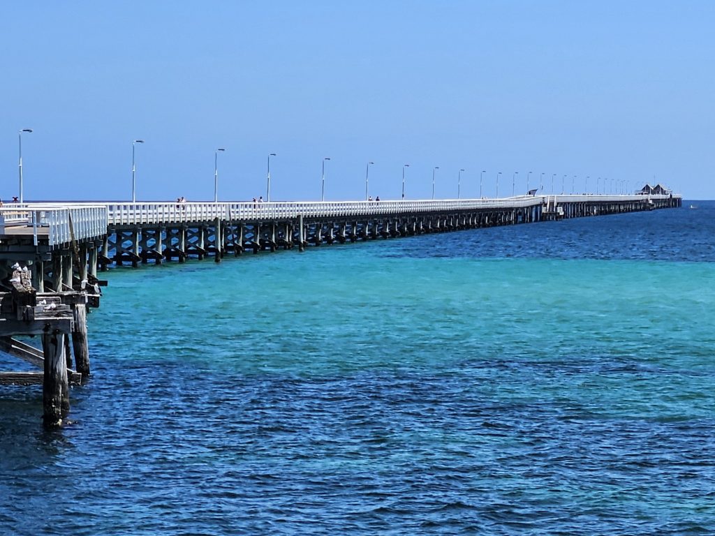 Die Sehenswürdigkeit in Busselton ist der Jetty. 1865 wurde mit diesem Steg begonnen und er erreichte 1960 seine heutige Länge von 1837m. Das letzte Schiff wurde 1974 entladen. Dann passierte lange nichts. Erst 2001 begann eine umfassende Restaurierung und Wiederinbetriebnahme, nachdem Feuer und Stürme einige Schäden angerichtet hatten. Wir gingen zu Fuss und besuchten das Busselton Underwater Observatory, welches ganz am Ende zu finden ist.