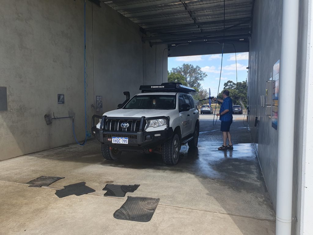 Unser Mietwagen muss grob gereinigt zurückgegeben werden. Also suchten wir erneut eine Waschanlage auf und reinigten den Wagen innen und aussen (Dunsborough Car & Boat Wash). An solchen Stationen kann man übrigens auch seinen Hund waschen !