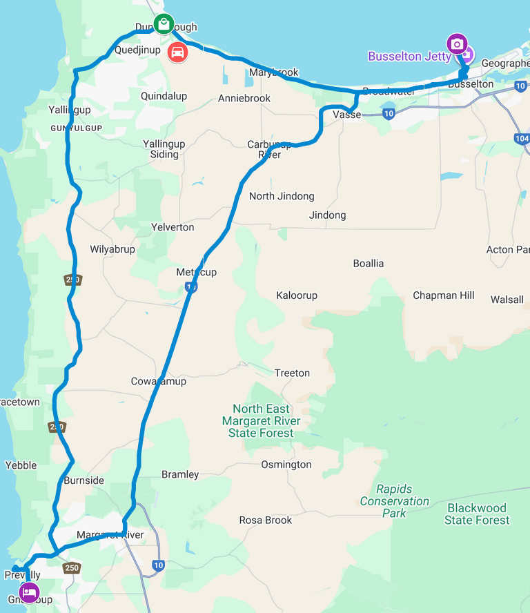 Das Zentrum von Busselton ist überschaubar, hat aber die grossen Anbieter wie Coles und Woolworths und viele Parkplätze.