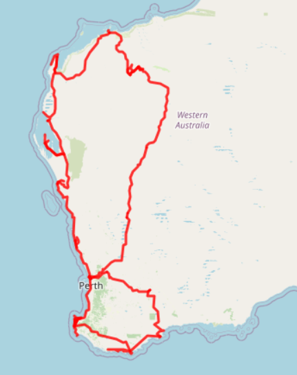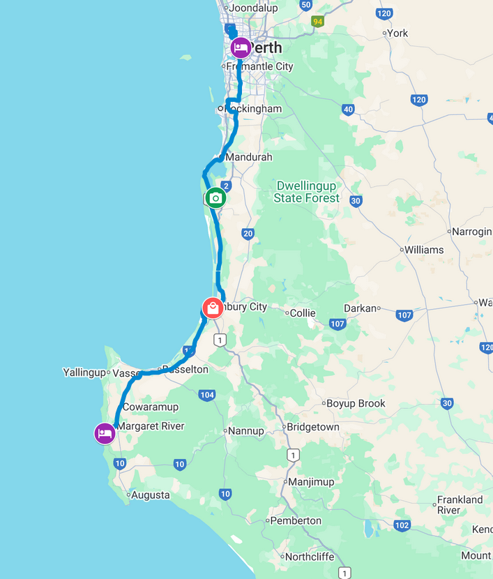 Das Ende unserer Rundreise nahte mit der Fahrt von Gnarabup nach Perth (290km, 3h Fahrzeit).