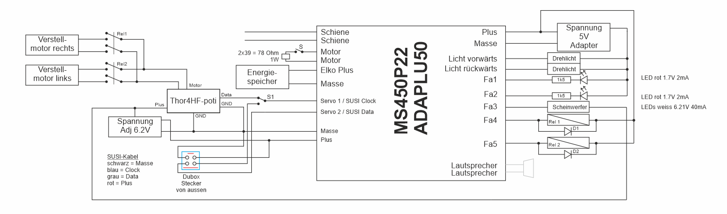 Der 4polige DUBOX-Stecker links im Schema dient dem Laden eines Soundprojektes via SUSI-Leitung.