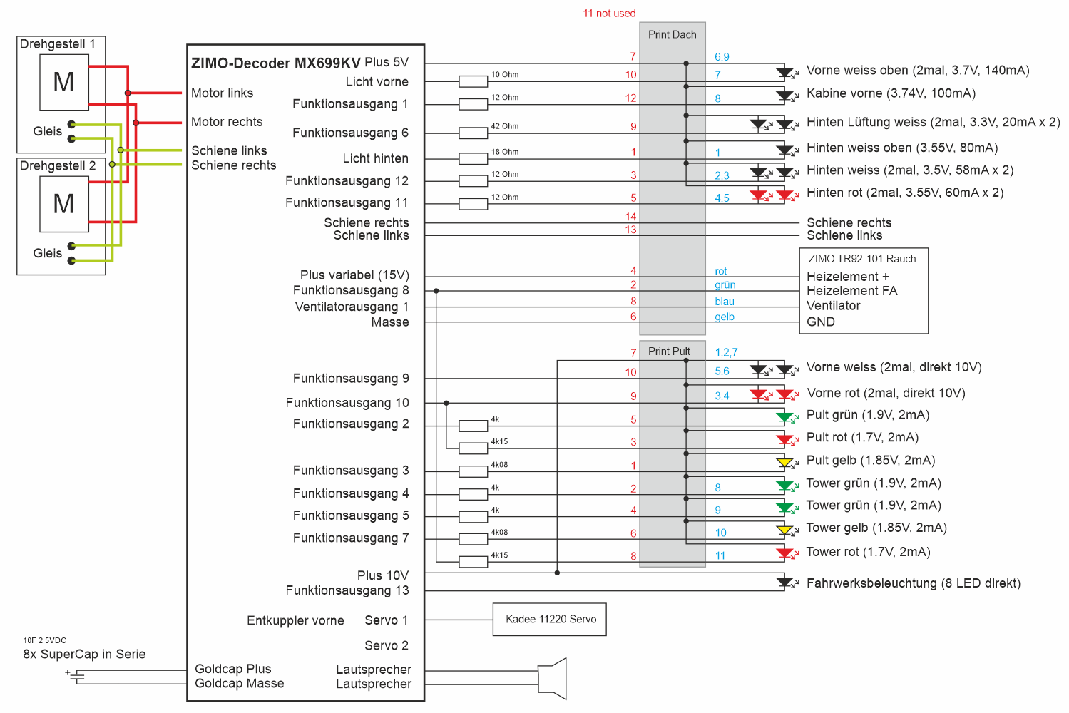 Das folgende Schema zeigt die Elektronik im Modell: